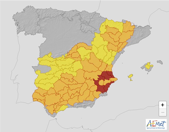 Mapa de alertas por calor de hoy.