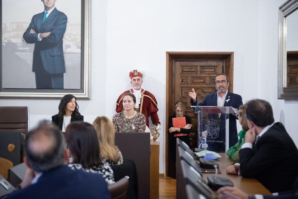 Un año más, el salón de plenos del Palacio provincial de la Diputación de Cáceres ha vivido el momento de emoción del que deja su vida laboral, tras años de trabajo en la institución provincial, y el reconocimiento de sus compañeros y compañeras, sus familiares y sus amigos. Es el acto central de la celebración del día de San Pedro de Alcántara, Patrón de la Diputación de Cáceres, en el que se dan cita, además de los y las protagonistas, los trabajadores que se han jubilado en el último año, representantes políticos y sociales de la región.