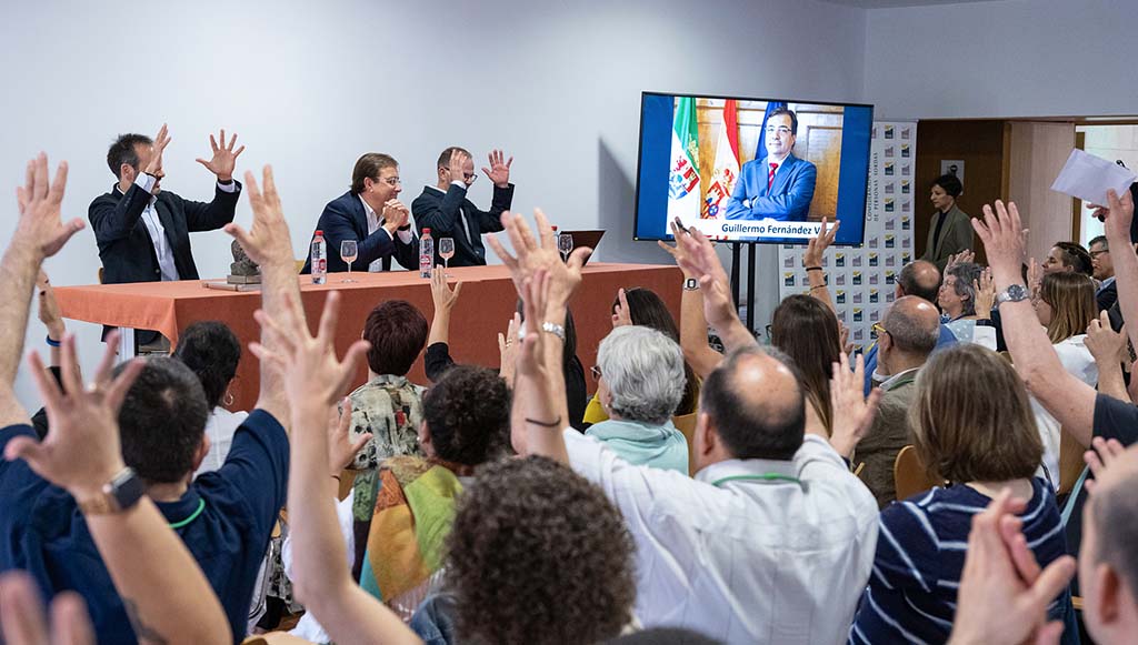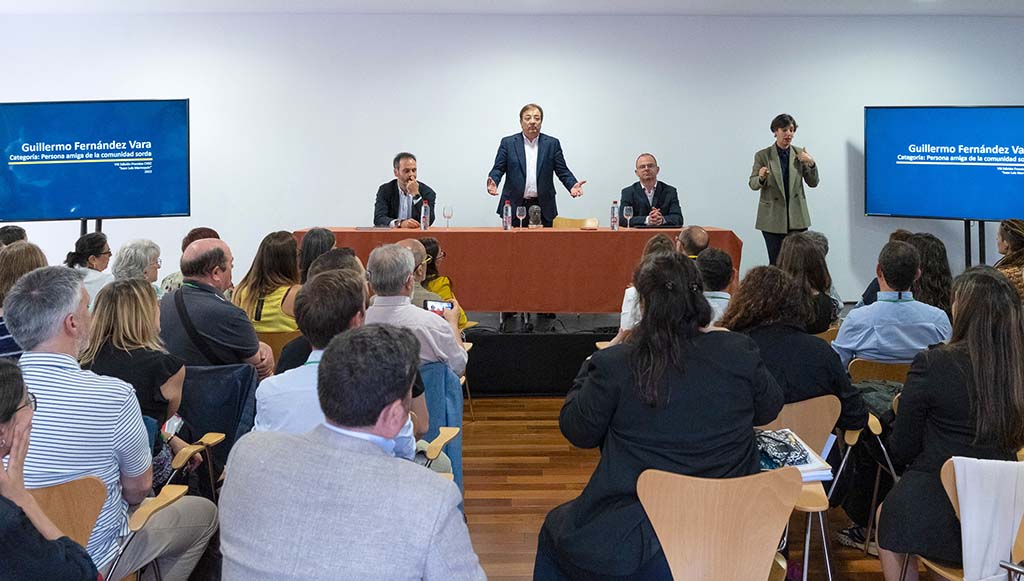 El presidente de la Junta de Extremadura en funciones, Guillermo Fernández Vara, ha recibido este viernes en Cáceres la distinción `Persona Amiga de la Comunidad Sorda’ en el marco de los Premios Juan Luis Marroquín 2023, impulsados por la Confederación Estatal de Personas Sordas, en reconocimiento a su apoyo a la labor que lleva a cabo la Federación Extremeña de Asociaciones de Personas Sordas (FEXAS) en defensa de los derechos de la ciudadanía sorda de Extremadura.
