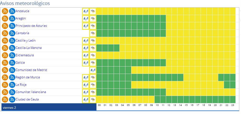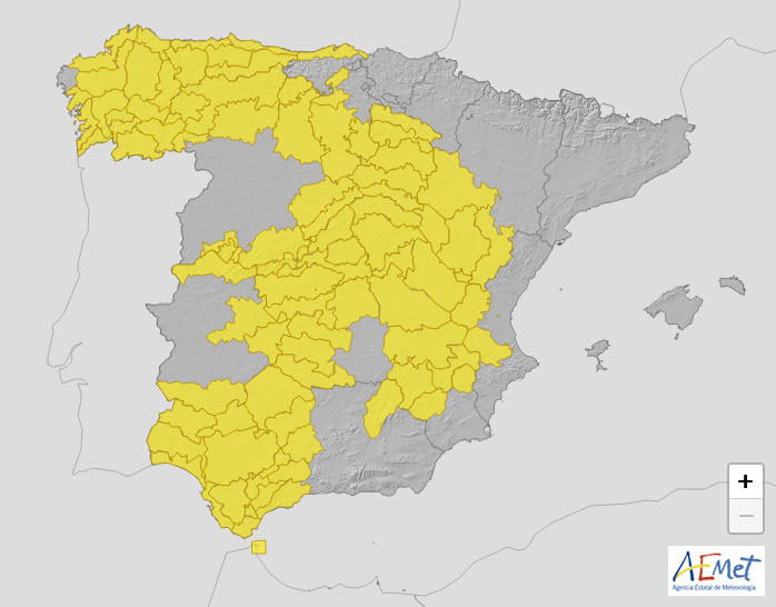 Alertas amarillas para mañana viernes en España.
