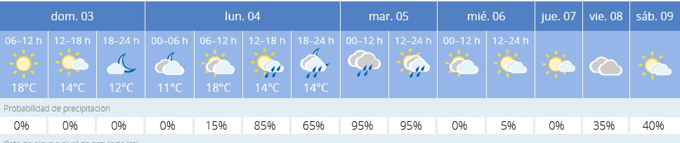 PREVISIÓN PARA MAÑANA LUNES DÍA 4 DE NOVIEMBRE
