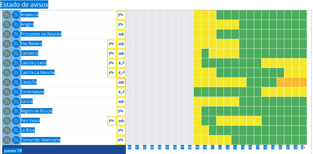 La alerta estará activa entre las 18:00 horas del jueves 18 de enero y las 18:00 horas del viernes 19 de enero. Desde el 112 Extremadura se recomienda a las a las alcaldías que mantengan en situación de alerta a las agrupaciones de voluntariado de Protección Civil de sus respectivas localidades, así como a la Policía Local y servicios de mantenimiento de su Ayuntamiento para que revisen y presten especial atención a los sumideros, socavones y muros en mal estado.